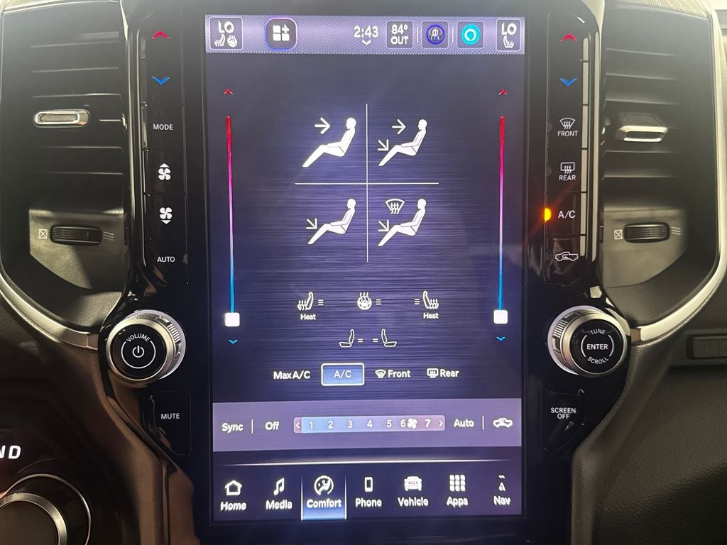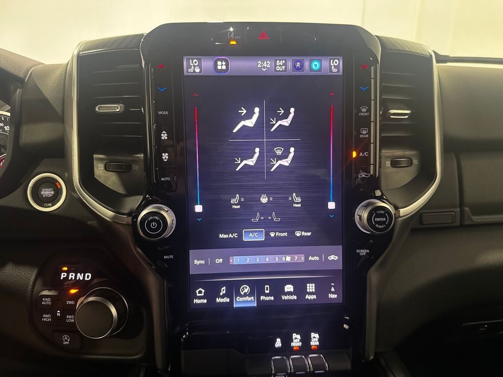 115V Auxiliary Power Outlet, 115V Auxiliary Rear Power Outlet, 12 Touchscreen Display, 2nd Row in Floor Storage Bins, 3 Rear Seat Head Restraints, 4 Way Front Headrests, 400W Inverter, 4G LTE Wi-Fi Hot Spot, 9 Amplified Speakers with Subwoofer, Accent Color Door Handles, Accent Color Premium Power Mirrors, Accent Color Tailgate Handle, Air Conditioning ATC with Dual Zone Control, Anti-Spin Differential Rear Axle, Apple CarPlay, Apple CarPlay/Android Auto, Auto Power-Folding Mirrors, Auto-Dimming Exterior Driver Mirror, Auto-Dimming Rear-View Mirror, Big Horn Level 2 Equipment Group, Black Exterior Mirrors, Black Exterior Truck Badging, Black Headlamp Bezels, Black Interior Accents, Black Painted Exterior Mirrors Caps, Black Premium Power Mirrors, Black Tail Lamp Bezels, Body Color Fender Flares, Body Color Front Bumper, Body Color Rear Bumper with Step Pads, Bucket Seats, Center Console Parts Module, Cluster 7.0 TFT Color Display, Configurable Drive Mode, Connected Travel and Traffic Services, Connectivity - US/Canada, Convex Wide-Angle Exterior Mirror Insert, Deluxe Cloth Bucket Seats, Disassociated Touchscreen Display, Dual Exhaust with Black Tips, Exterior Mirrors Courtesy Lamps, Exterior Mirrors with Heating Element, Exterior Mirrors with Supplemental Signals, Front Seat Back Map Pockets, Full Length Floor Console, Global Telematics Box Module, Glove Box Lamp, Google Android Auto, GPS Antenna Input, GPS Navigation, Grille Black Surround Black Mesh, HD Radio, Heated Front Seats, Heated Steering Wheel, Integrated Center Stack Radio, Integrated Voice Command with Bluetooth®, Leather Wrapped Steering Wheel, LED Dome Lamp with on/Off Switch, LED Footwell Lighting, Manual Adjust 4-Way Front Passenger Seat, Media Hub with 2 Charge Only USBs, Night Edition, Overhead LED Lamps, Power 2-Way Driver Lumbar Adjust, Power Adjust 8-Way Driver Seat, Power Adjustable Pedals, Premium Overhead Console, Quick Order Package 27Z Big Horn, Radio: Uconnect 5 Navigation with 12.0 Display, RAM Grille Badge - Black, Rear 60/40 Folding Seat, Rear Center Armrest, Rear Power Sliding Window, Rear Window Defroster, Remote Tailgate Release, Security Alarm, SiriusXM Radio Service, SiriusXM with 360L, Steering Wheel Mounted Audio Controls, Sun Visors with Illuminated Vanity Mirrors, Universal Garage Door Opener, USB Host Flip, Wheels: 20 x 9.0 Aluminum Painted Clad, Wheels: 20 x 9 Aluminum Chrome Clad. Price includes: $1000 - 2026 Midwest BC Regional Retail Bonus Cash. Exp. 04/30/2026 $3500 - 2026 National Retail Bonus Cash . Exp. 04/30/2026