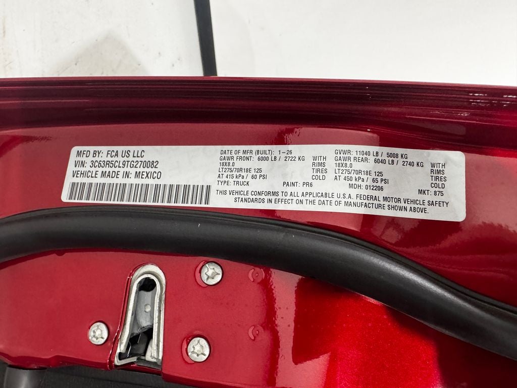 115-Volt Auxiliary Front Power Outlet, 12 Touchscreen Display, 2 Way Rear Headrest Seat, 4 Way Front Headrests, 40/20/40 Split Bench Seat, 400W Inverter, 4G LTE Wi-Fi Hot Spot, 5th Wheel/Gooseneck Towing Prep Group, Air Conditioning ATC with Dual Zone Control, Alexa Built-in, Anti-Spin Differential Rear Axle, Apple CarPlay, Apple CarPlay/Android Auto, Auto-Dimming Rear-View Mirror, Bed Utility Group, Black Exterior Mirrors, Bright Front Bumper, Bright Rear Bumper, Carpet Floor Covering, Center Hub, Chrome Grille Surround, Cloth 40/20/40 Bench Seat, Connected Travel and Traffic Services, Connectivity - US/Canada, Disassociated Touchscreen Display, Emergency Vehicle Alert System (EVAS), Exterior 115V AC Outlet, Exterior Mirrors Courtesy Lamps, Exterior Mirrors with Heating Element, Exterior Mirrors with Supplemental Signals, For Details, Visit DriveUconnect.com, For More Info, Call 800-643-2112, Front and Rear Floor Mats, Front Armrest with Cupholders, Global Telematics Box Module, Google Android Auto, GPS Antenna Input, GPS Navigation, HD Radio, Integrated Voice Command with Bluetooth®, LED Bed Lighting, Manual Adjust 4-Way Driver Seat, Manual Adjust 4-Way Front Passenger Seat, Manual Folding Exterior Mirrors, Manual Telescoping Mirrors, Matte Black Mesh Grille with Chrome, Mirror Running Lights, Mopar Black Tubular Side Steps, MOPAR Deployable Bed Step, MOPAR Spray in Bedliner, Off-Road Info Pages, ParkSense Front/Rear Park Assist System, Power Adjust Mirrors, Power Heated Folding Telescope Mirrors, Power-Adjustable Convex Aux Mirrors, Quick Order Package 24A Tradesman, Radio: Uconnect 5 Navigation with 12.0 Display, Rear Folding Seat, Rear Power Sliding Window, Remote USB Port - Charge Only, Selectable Tire Fill Alert, SiriusXM Radio Service, SiriusXM with 360L, Storage Tray, Tinted Acoustic Windshield Glass, Tradesman Level 2 Equipment Group, Trailer Tow Pages, Wheels: 18 x 8.0 Steel Chrome Clad. Price includes: $1000 - 2026 National Bonus Cash . Exp. 04/30/2026 $2000 - 2026 Midwest BC SFS Retail Bonus Cash. Exp. 04/30/2026