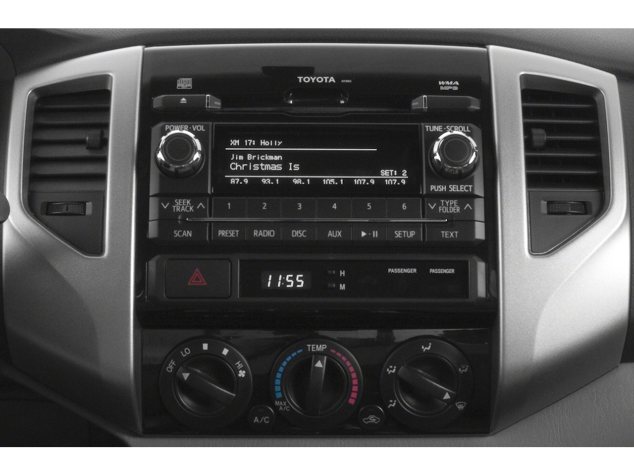 - Radio: Entune AM/FM/CD -inc: MP3/WMA playback capability, 6.1" touch-screen display, auxiliary audio jack, USB 2.0 port, iPod connectivity and control, Bluetooth® hands-free phone capability, phone book access and music streaming