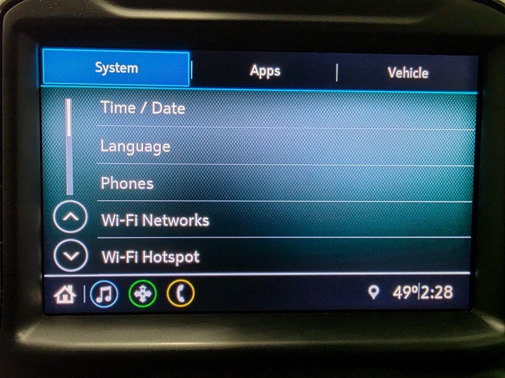 - Audio system, Chevrolet Infotainment 3 system 8" diagonal color touchscreen, AM/FM stereo. Additional features for compatible phones include: Bluetooth® audio streaming for 2 active devices, voice command pass-through to phone, Apple CarPlay and Android Auto capable.